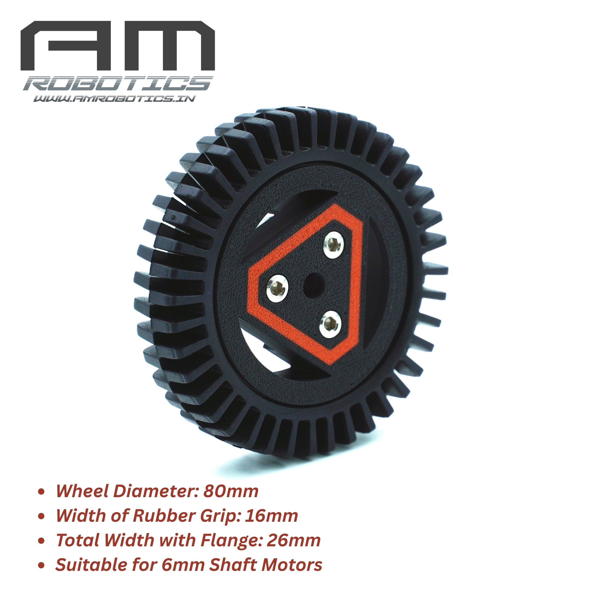 AM Robotics 80x16 mm All-Terrain Flexible Gripper Wheel for Robotic Vehicles with 6mm ID Aluminum Flange (2 Wheels)